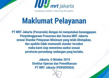 ad_1 Sesuai dengan Peraturan Gubernur Daerah Khusus Ibu Kota Jakarta Nomor 95 Tahun 2019 tentang “Standar... Read More → MRT Jakarta Sampaikan Maklumat Pernyataan – MRT Jakarta