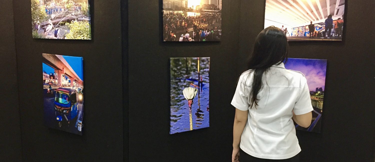 Aprianti (24) terlihat serius memperhatikan sejumlah foto yang dipajang di area exit B Stasiun Bundaran Hotel Indonesia. Ia mengamati foto orang lalu lalang di Terowongan Kendal, Dukuh Atas. Tidak lama, ia berpindah melihat foto masyarakat berkegiatan di Taman Spot Budaya, Dukuh Atas. Sesekali Aprianti mengambil gambar suasana pameran foto tersebut.
