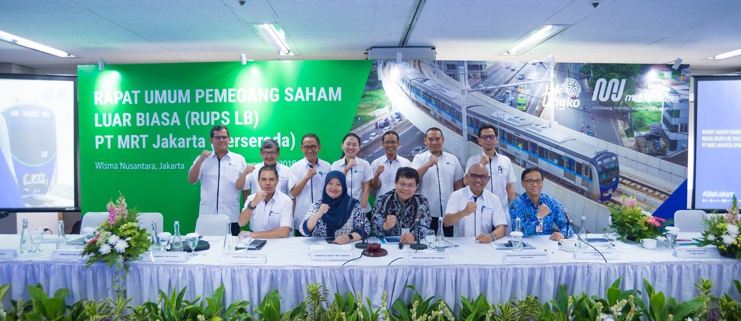 Pada Jumat (29-11-2019) lalu, PT MRT Jakarta (Perseroda) menyelenggarakan Rapat Umum Pemegang Saham Luar Biasa (RUPS LB) di Kantor Pusat PT MRT Jakarta (Perseroda) di Gedung Wisma Nusantara, Jakarta Pusat. RUPS LB ini menyetujui dan mengesahkan sejumlah hal, antara lain Rencana Kerja dan Anggaran Perusahaan (RKAP) Tahun Buku 2020; Peningkatan Modal Dasar Perseroan; dan Peningkatan Modal Disetor dan Ditempatkan Perseroan. Hadir dalam rapat ini, Asisten Perekonomian dan Keuangan Setda Provinsi DKI Jakarta, Sri Haryati, selaku penerima kuasa pemegang saham Pemerintah Provinsi DKI Jakarta dan Direktur Administrasi dan Keuangan Perumda Pasar Jaya, Ramses Butar Butar, sebagai salah satu pemegang saham.
