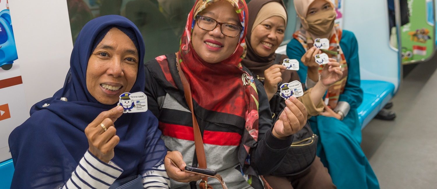 Sejumlah penumpang MRT Jakarta berpose saat peringatan Hari Pelanggan Nasional 2019. MRT Jakarta/Irwan Citrajaya