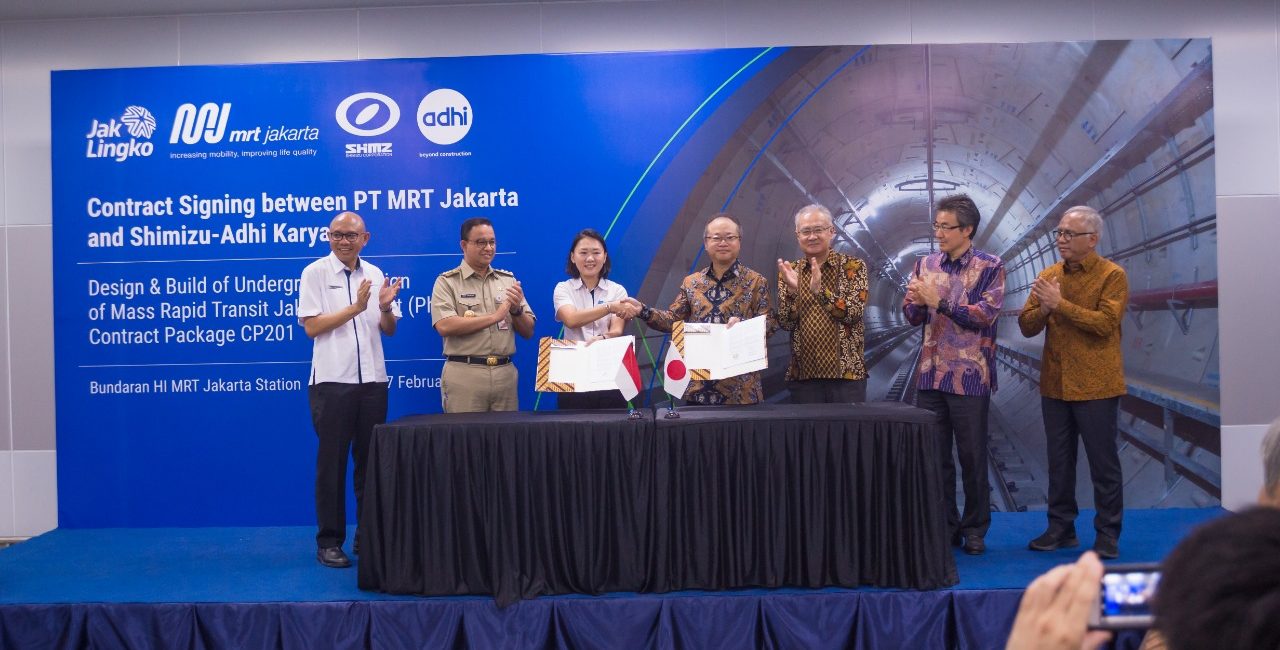 Pada Senin (17-1-2020) lalu, dilakukan penandatanganan kontrak kerja paket CP201 fase 2A MRT Jakarta. Penandatanganannya dilakukan oleh Direktur Konstruksi PT MRT Jakarta (Perseroda) Silvia Halim dan Perwakilan Shimizu-Adhi Karya Joint Venture (SAJV) Yutaka Okumura. Pekerjaan yang termasuk paket kontrak ini adalah membangun dua terowongan yang menghubungkan Stasiun Bundaran HI hingga Stasiun Harmoni dan dua stasiun bawah tanah, yaitu Stasiun Thamrin dan Stasiun Monas. Total panjang jalur yang dikerjakan sepanjang 2,8 kilometer. Penandatanganan yang berlangsung di area exit B Stasiun Bundaran HI ini disaksikan langsung oleh Gubernur Provinsi DKI Jakarta Anies Baswedan, Duta Besar Jepang untuk Indonesia Masafumi Ishii, Chief Representative Japan Internasional Cooperation Agency (JICA) untuk Indonesia Yamanaka Shinichi, dan Direktur Utama PT Adhi Karya (Persero) Tbk Budi Harto.
