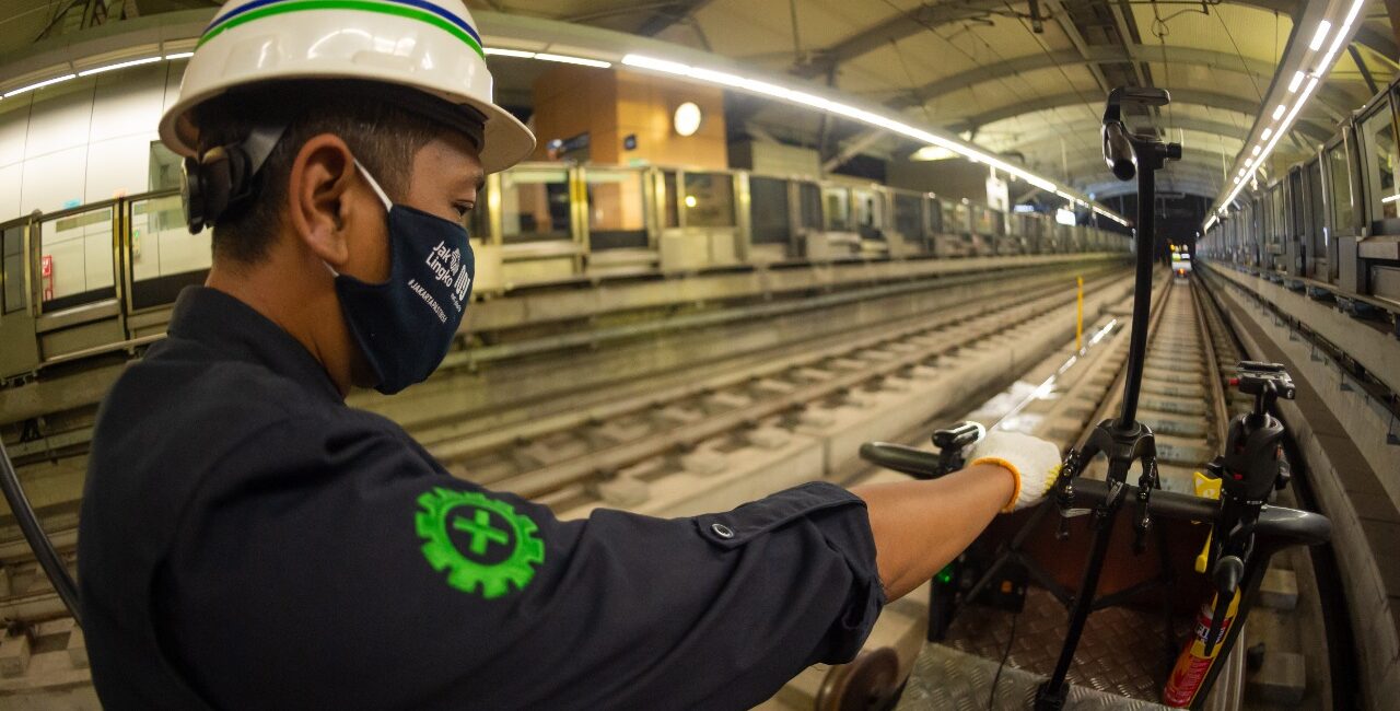 Inspeksi kondisi rel menggunakan lori mesin yang dilengkapi dengan kamera sangat membantu kerja petugas pemeliharaan. Foto oleh PT MRT Jakarta (Perseroda)/Irwan Citrajaya