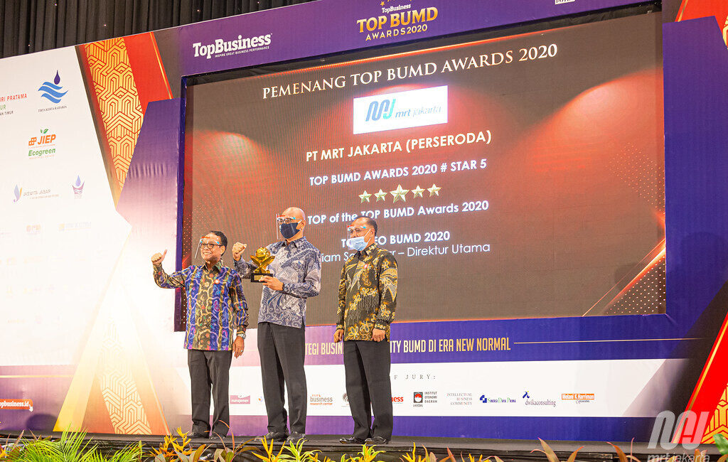 Dalam ajang “TOP BUMD Awards 2020” yang berlangsung pada Kamis (27-8-2020) lalu, PT MRT Jakarta (Perseroda) meraih tiga penghargaan sekaligus, yaitu TOP BUMD 2020 Star #5, Top of the TOP BUMD 2020, dan TOP CEO BUMD 2020 yang diberikan kepada Direktur Utama PT MRT Jakarta (Perseroda) William Sabandar yang hadir langsung di ajang penghargaan tersebut di The Sultan Hotel, Jakarta. Ajang ini juga memberikan penghargaan kepada Gubernur Provinsi DKI Jakarta Anies Baswedan sebagai Top Pembina BUMD 2020. PT MRT Jakarta (Perseroda) terpilih dari 119 badan usaha milik daerah yang lolos hingga tahap penilaian dan wawancara oleh dewan juri.