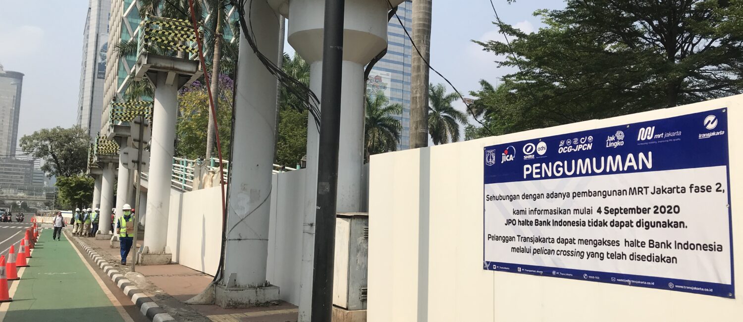 Sebagai bagian dari persiapan pembangunan Stasiun Thamrin, jembatan penyeberangan orang (JPO) yang menghubungkan sisi barat dan timur serta Halte Transjakarta Bank Indonesia mulai dibongkar. Sejak Jumat, 4 September 2020 lalu, tim kontraktor telah mulai membongkar satu per satu bagian jembatan penyeberangan orang tersebut. Per Senin (7-9-2020) lalu, bagian atap dan lantai ramp JPO sisi barat sudah lepas. Proses pembongkaran akan terus dilakukan sampai dengan Minggu, 20 September 2020 mendatang. Pekerjaan dilakukan setiap hari mulai pukul 23.00 WIB sampai dengan 04.00 WIB. Meskipun dibongkar, masyarakat yang ingin menyeberang di area tersebut dapat menggunakan pelican crossing yang telah tersedia. Halte Transjakarta Bank Indonesia juga tetap beroperasi seperti biasa melayani penumpang.