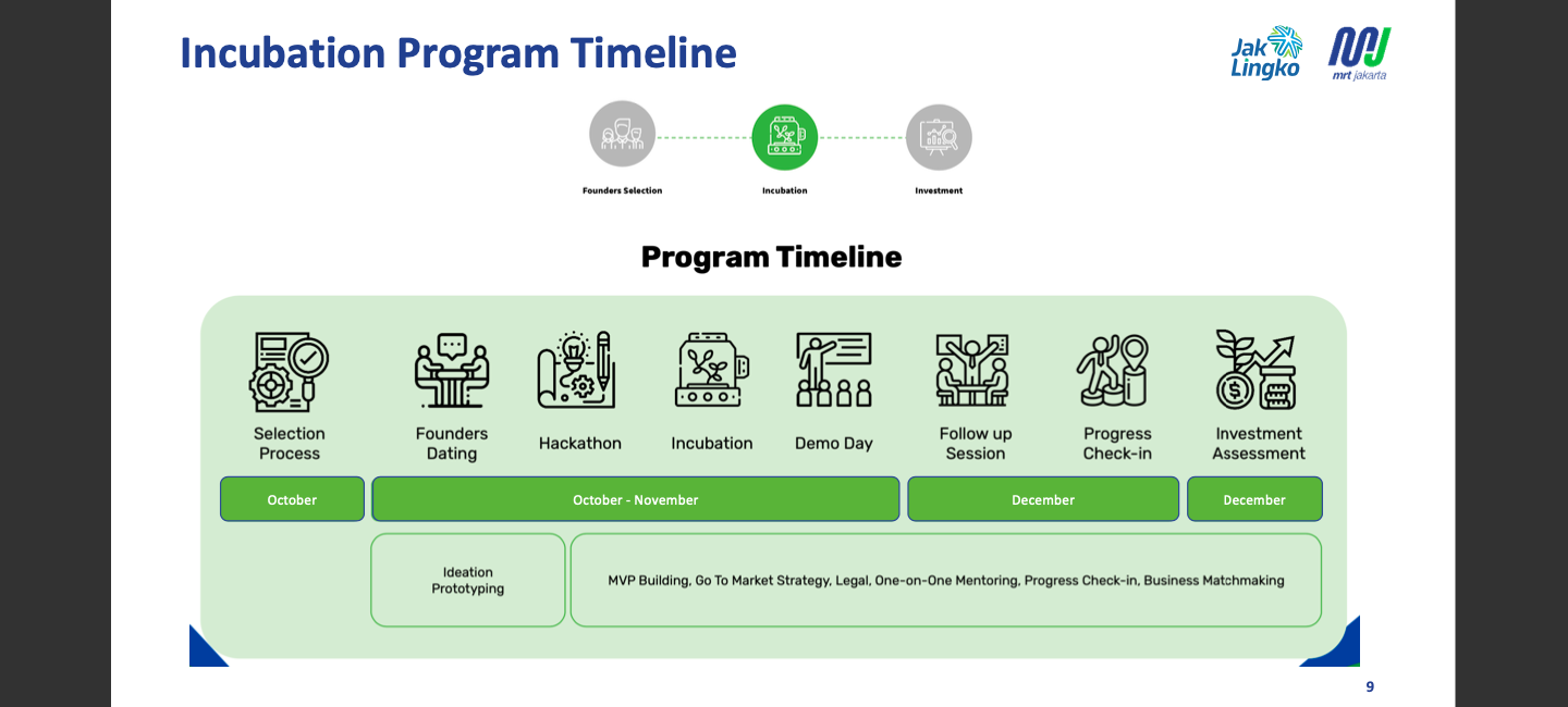 Meskipun pandemi telah meluluh lantakkan banyak sektor bisnis, namun perkembangan teknologi digital dalam bidang seperti kesehatan, belanja dan toko daring, serta jasa pengantaran meningkat pesat. Program incubator ini diharapkan dapat mencipkan inovasi yang dapat beradaptasi dengan situasi pandemi sekaligus berkontribusi terhadap kemudahan dan peningkatan kualitas hidup masyarakat yang diusung oleh PT MRT Jakarta (Perseroda).