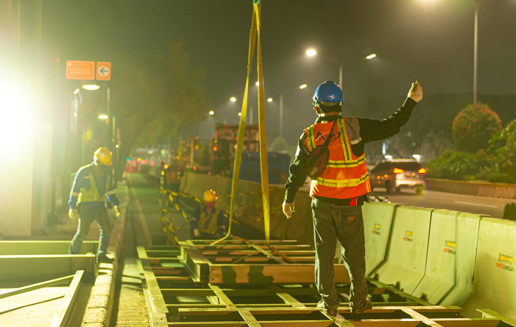 Pekerja CP 201 sedang mengerjakan pembangunan halte bus transjakarta yang akan digunakan lima tahun ke depan selama pembangunan Stasiun Thamrin. Foto oleh PT MRT Jakarta (Perseroda)/Irwan Citrajaya.