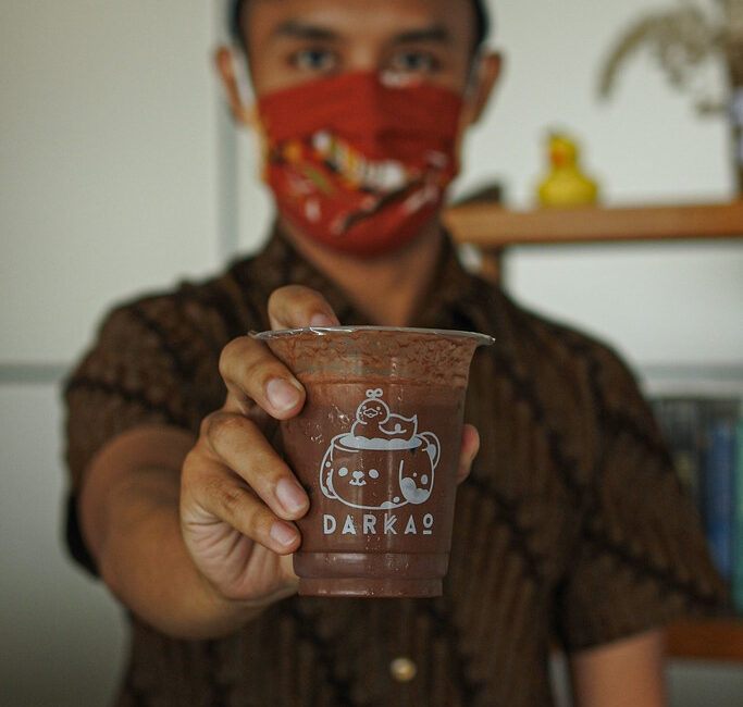 Suasana Stasiun Lebak Bulus lengang. Tidak banyak pengguna jasa yang terlihat. Di salah satu gerai UMKM, Bayu Respati (25) terlihat fokus saat menakar berat setiap bahan racikan minuman iced darkao di gerai mungilnya. Ia menuangkan satu per satu bahan ke dalam wadah di atas timbangan elektrik sembari mengamati angka yang tertera. Saat sudah pas, ia menambahkan air lalu memasukkan semuanya ke mesin pencampur otomatis (blender). Terakhir, ia menampung hasilnya di dalam gelas plastik. Pagi itu, waktu baru menunjukkan pukul 10 pagi.