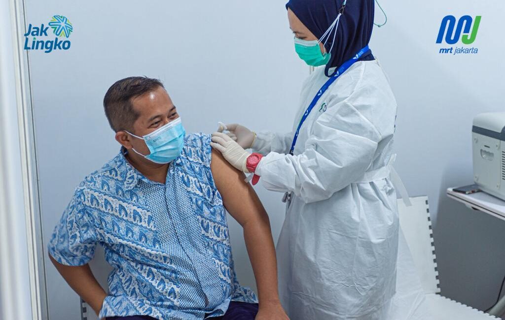 Salah satu karyawan mendapatkan vaksinasi. Foto oleh PT MRT Jakarta (Perseroda)/Irwan Citrajaya.