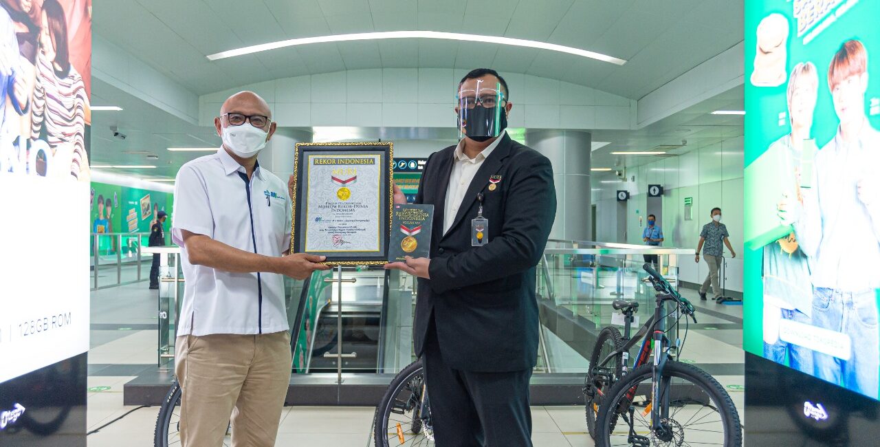 Pada Kamis (25-3-2020) lalu, sehari setelah peringatan dua tahun operasional MRT Jakarta, PT MRT Jakarta (Perseroda) menerima piagam penghargaan Museum Rekor Dunia-Indonesia (MURI) atas rekor “Operator Transportasi Publik yang Menyediakan Fasilitas Terbanyak untuk Penumpang Bersepeda”. Penghargaan tersebut diserahkan oleh Wakil Direktur Operasional MURI Awan Rahargo dan diterima langsung oleh Direktur Utama PT MRT Jakarta (Perseroda) William Sabandar di area beranda peron (concourse) Stasiun Bundaran HI.
