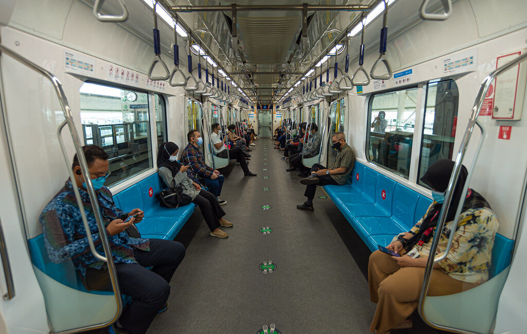 Selama menggunakan ratangga, pengguna jasa MRT Jakarta tidak diperbolehkan berbicara. Hal tersebut diharapkan akan mengurangi potensi penyebaran virus COVID-19. Foto oleh PT MRT Jakarta (Perseroda)/Irwan Citrajaya.