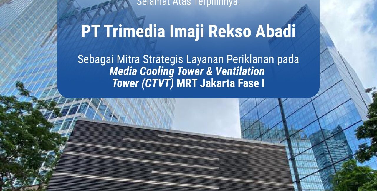 Setelah melalui rangkaian proses seleksi pemilihan mitra CTVT MRT Jakarta Fase I dan evaluasi dengan mengacu pada syarat, ketentuan, dan berbagai kesesuaian aspek sebagaimana tercantum dalam Dokumen Seleksi yang telah disampaikan, maka dengan ini PT MRT Jakarta (Perseroda) menetapkan PT Trimedia Imaji Rekso Abadi sebagai Mitra Strategis terpilih Layanan Periklanan pada Media CTVT MRT Jakarta Fase I. PT Trimedia Imaji Rekso Abadi berhak melakukan pengusahaan Layanan Periklanan pada media CTVT MRT Jakarta Fase I.
