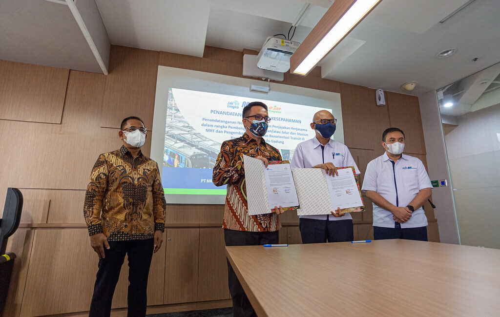 Sebagai wujud kerja kolaborasi dan pengembangan kawasan transit di koridor timur—barat MRT Jakarta ke depannya, pada Selasa (31-8-2021) lalu, bertempat di Kantor Pusat PT MRT Jakarta (Perseroda) gedung Wisma Nusantara, Jakarta Pusat, telah dilakukan penandatanganan Nota Kesepahaman antara PT MRT Jakarta (Perseroda) dan PT Jakarta Industrial Estate Pulogadung terkait penjajakan kerja sama dalam rangka pembangunan depo MRT Jakarta dan pembangunan kawasan berorientasi transit di kawasan industri Pulo Gadung. Penandatanganan dilakukan langsung oleh Direktur Utama PT MRT Jakarta (Perseroda) William Sabandar dan Direktur Utama PT Jakarta Industrial Estate Pulogadung Landi R. Mangaweang, disaksikan oleh direksi kedua badan usaha milik daerah Provinsi DKI Jakarta tersebut. Acara yang disiarkan secara virtual ini, juga disaksikan oleh Kepala Dinas Perhubungan Provinsi DKI Jakarta Syafrin Liputo.