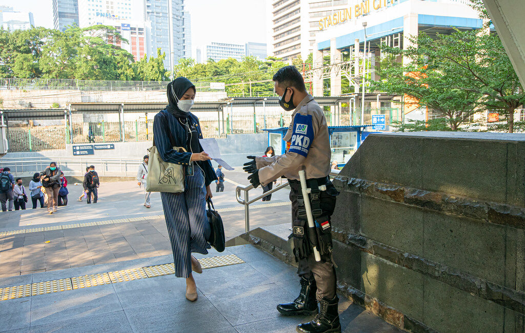 Calon pengguna MRT Jakarta wajib menunjukkan dokumen yang disyarakat sebelum masuk ke area stasiun. Foto oleh PT MRT Jakarta (Perseroda)/Irwan Citrajaya.
