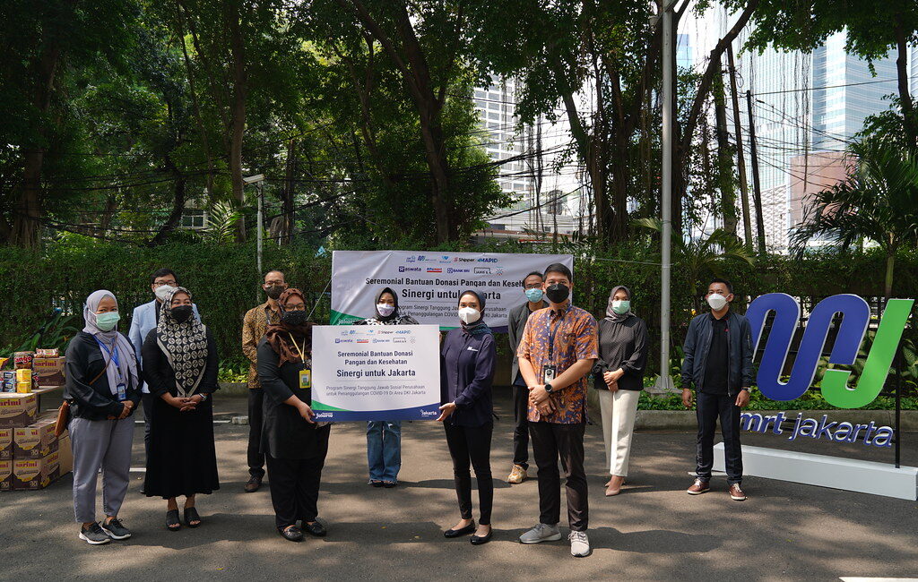 PT MRT Jakarta (Perseroda) menyerahkan ratusan paket bantuan produk pangan dan 1.500 blister obat-obatan serta vitamin kepada masyarakat terdampak pandemi COVID-19 melalui empat yayasan sosial yang berada di sepanjang jalur MRT Jakarta, yaitu Yayasan Pembina Anak Cacat Jakarta, Yayasan Yos Sudarso, Yayasan Nusa Putra, dan Yayasan Santi Rama. Seremonial penyerahan dilakukan di Kantor Pusat PT MRT Jakarta (Perseroda) di Wisma Nusantara, Jakarta Pusat pada Jumat (1-10-2021).