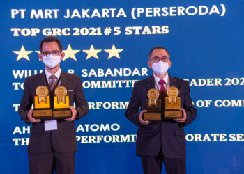ad_1 Direktur Operasi dan Pemeliharaan Muhammad Effendi dan Komisaris Adnan Pandu Praja saat menerima... Read More → PT MRT Jakarta (Perseroda) Raih Empat Penghargaan Tingkat Nasional Top GRC Awards 2021