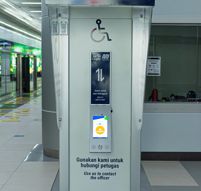DINA merupakan fasilitas komunikasi di stasiun MRT Jakarta yang dapat digunakan oleh seluruh penumpang guna mengurangi kontak fisik serta dapat membantu penumpang dalam kondisi darurat apabila membutuhkan bantuan petugas, selain itu alat ini juga dilengkapi dengan fitur ramah disabilitas. DINA dapat mengakomodir komunikasi dua arah yang dapat menghubungkan antara pengguna dengan petugas di Stasiun MRT Jakarta dalam bentuk audio maupun visual serta dilengkapi dengan fitur pesan tertulis. Dengan alat ini, teman tuli dapat menggunakan fitur teks yang tersedia maupun fitur teks bebas untuk menanyakan informasi khusus dan untuk teman tuna netra dapat berbicara langsung dengan menekan tombol call braille untuk berkomunikasi dengan petugas di stasiun. Secara desain dimensi, DINA dapat menyesuaikan dengan posisi pengguna kursi roda. DINA dapat memberikan beragam informasi terkait jadwal keberangkatan, petunjuk arah & lokasi, laporan atau keluhan, serta bantuan kehadiran petugas.