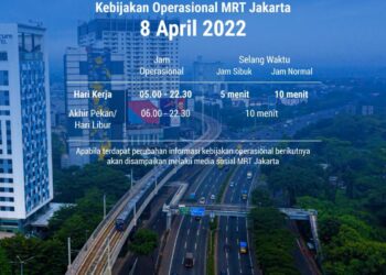 ad_1 Image PT MRT Jakarta (Perseroda) akan memberlakukan jadwal operasi pukul 05.00—22.30 WIB setiap hari... Read More → Perubahan Jadwal Operasional MRT Jakarta Per 8 Maret 2022