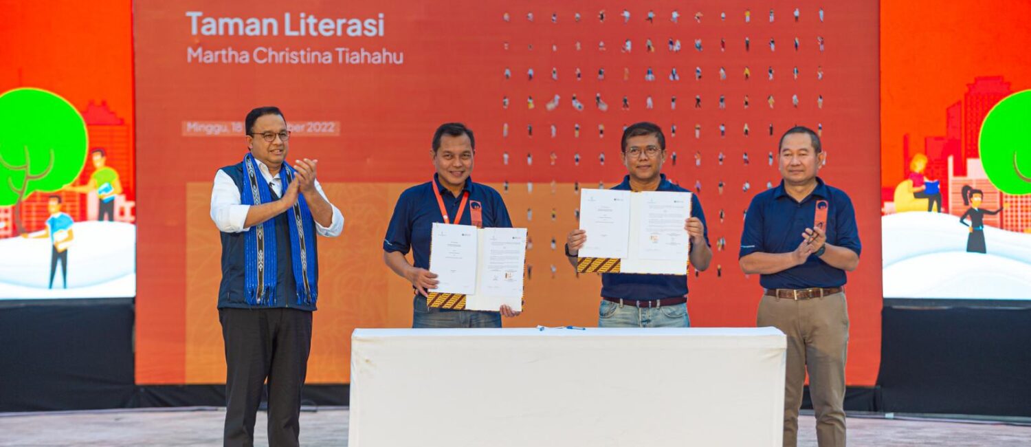“Taman ini merupakan hasil kolaborasi sejumlah pihak, yaitu PT Integrasi Transit Jakarta, Dinas Pertamanan dan Kehutanan DKI Jakarta, dan Perpustakaan Jakarta. Kami berharap agar taman ini ke depannya dapat dimanfaatkan dan dijaga dengan sebaik-baiknya oleh masyarakat sebagai salah satu ruang publik yang aman dan nyaman untuk pengembangan kegiatan literasi dan seni budaya di Jakarta,” pungkasnya. Dalam peresmian ini pula dilakukan penandatanganan nota kesepahaman terkait Kolaborasi Penyediaan Ruang Baca di Kawasan Berorientasi Transit antara PT ITJ dan Dinas Perpustakaan dan Kearsipan Provinsi DKI Jakarta. Penandatanganan dilakukan langsung oleh Aidin Barlean dan Kepala Dinas Perpustakaan dan Kearsipan Provinsi DKI Jakarta Wahyu Haryadi.