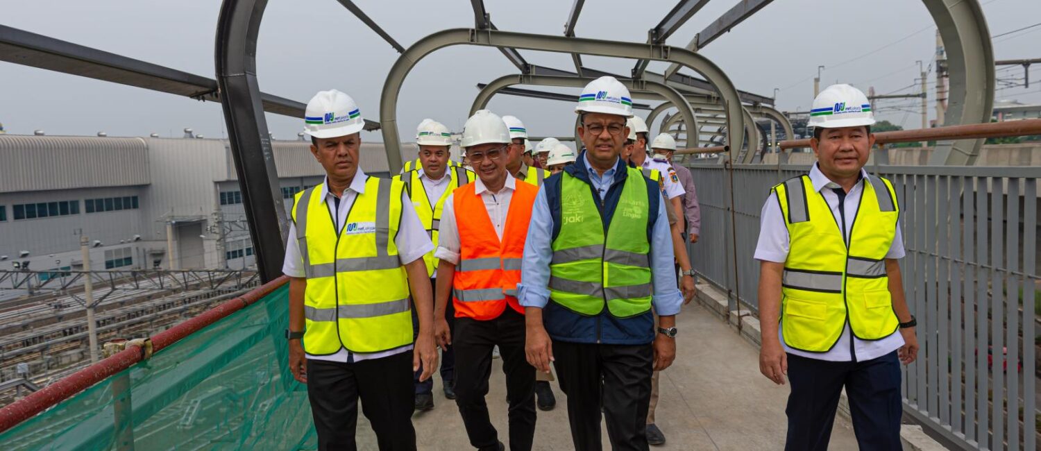 Gubernur Anies Baswedan saat mengunjungi area pembangunan jembatan layang Lebak Bulus. Foto oleh PT MRT Jakarta (Perseroda)/Irwan Citrajaya.