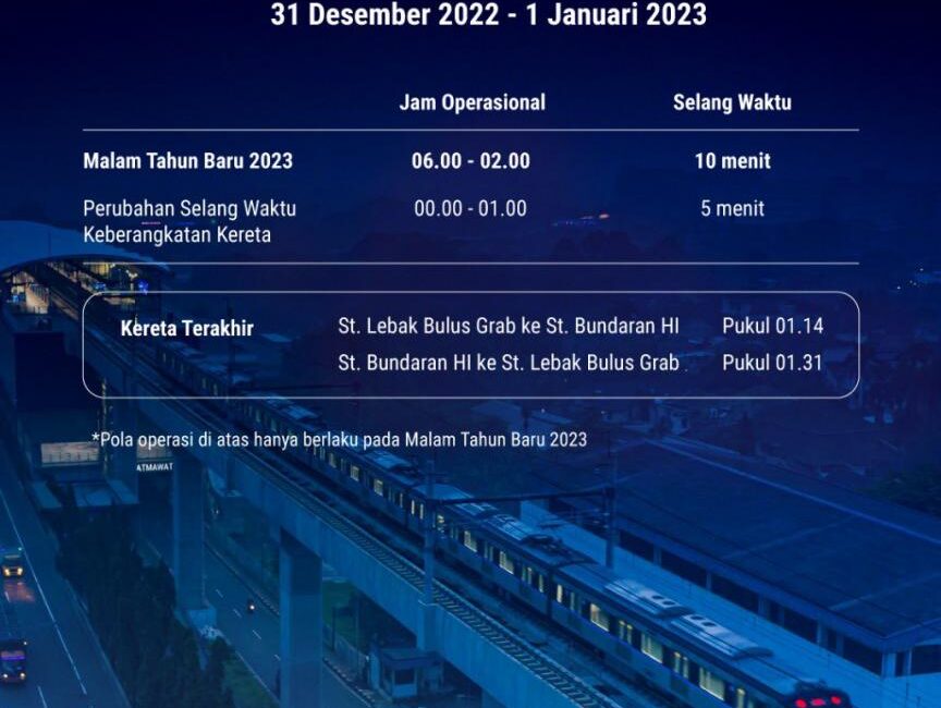 Perubahan pola operasi tersebut sebagai bentuk tindak lanjut Surat Keputusan Kepala Dinas Perhubungan Provinsi DKI Jakarta Nomor e-2229/PH.10.00 tentang Penugasan Kepada PT MRT Jakarta dan PT LRT Jakarta untuk Penyediaan Layanan Perkeretaapian Pendukung Festival Malam Tahun Baru 2023 Semarak Jakarta, Gelorakan Keketuaan ASEAN Tahun 2023.