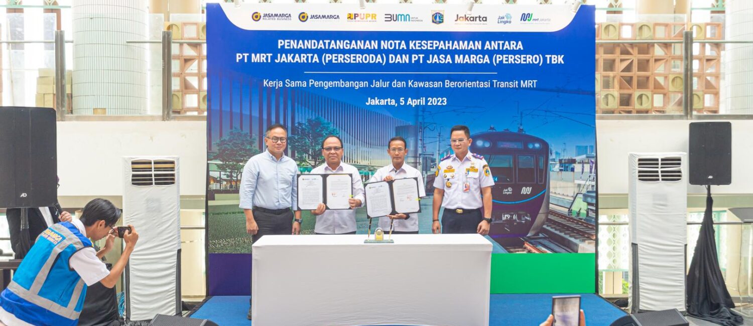 PT MRT Jakarta (Perseroda) dan PT Jasa Marga (Persero) Tbk. menyepakati kerja sama pengembangan jalur dan kawasan berorientasi transit (transit-oriented development/TOD). Kesepakatan tersebut dituangkan dalam dokumen Nota Kesepahaman yang ditandatangani oleh Direktur Utama PT MRT Jakarta (Perseroda) Tuhiyat dan Direktur Utama PT Jasa Marga (Persero) Tbk Subakti Syukur. Penandatanganan dilakukan di Travoy Hub/Toll Corridor Development (TCD) Taman Mini Indonesia Indah, Jakarta, pada Rabu (5-4-2023). Penandatanganan disaksikan secara langsung oleh Wakil Menteri II BUMN Kartika Wirjoatmodjo dan Kepala Dinas Perhubungan Provinsi DKI Jakarta Syafrin Liputo.
