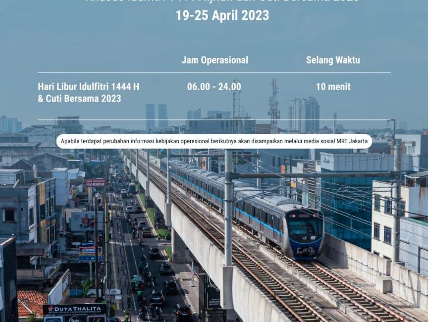 MRT Jakarta akan tetap beroperasi melayani masyarakat selama libur idulfitri mendatang. Seluruh stasiun juga dibuka dengan pelayanan seperti biasa,” jelas Kepala Divisi Corporate Secretary PT MRT Jakarta (Perseroda) Ahmad Pratomo. “Selain jadwal operasional ini, kami juga menyiapkan sejumlah program menarik bagi para pengguna jasa MRT Jakarta selama masa liburan tersebut,” tuturnya.