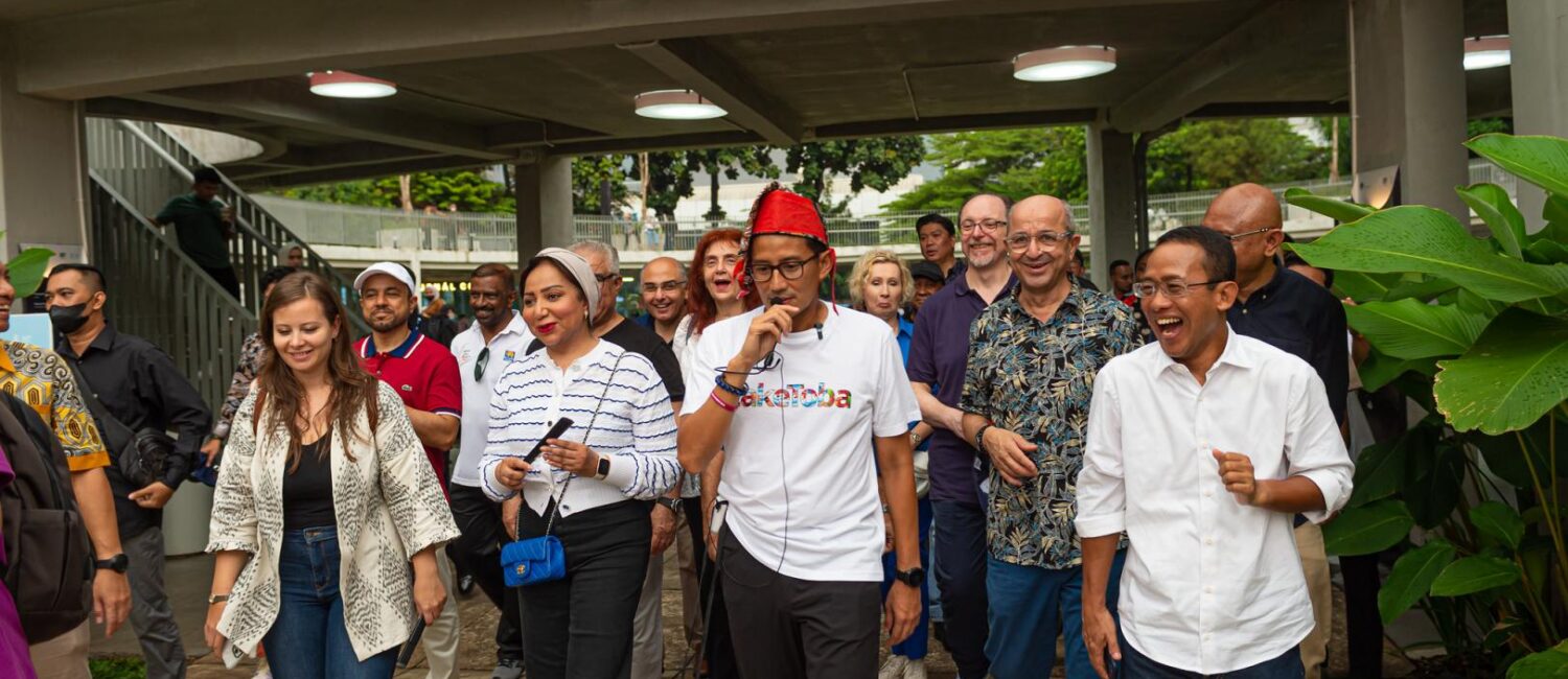 “Perjalanan ini seabgai upaya untuk mengenalkan dan mempromosikan bagi calon-calon wisatawan dari negara sahabat yang ingin datang ke Indonesia, khususnya Jakarta, “jelas Sandiaga. “Moda transportasi umum bisa digunakan dengan aman dan nyaman,” tambahnya. Rombongan memulai kegiatan walking tour ini dengan naik MRT Jakarta dari Stasiun Bundaran HI menuju Stasiun Blok M BCA lalu berjalan kaki menuju Taman Literasi Martha Christina Tiahahu. Di sini, rombongan disambut dengan tarian Toraja. Toraja Tourism Board William Sabandar berkesempatan mempresentasikan potensi wisata Tana Toraja dan rencana festival wisatanya.