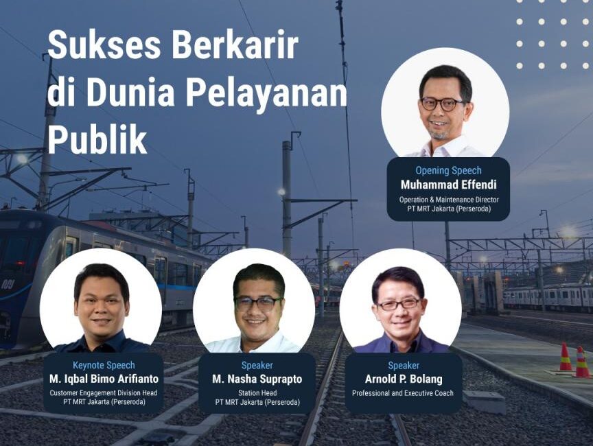 Hal tersebut disampaikan oleh Direktur Operasi dan Pemeliharaan PT MRT Jakarta (Perseroda) Muhammad Effendi saat membuka Webinar Service Excellence: Sukses Berkarier di Dunia Pelayanan Publik. Webinar pada Kamis (27-7-2023) yang diikuti tidak kurang dari 400 peserta dari dalam dan luar Jakarta. Dalam diskusi berdurasi sekitar dua jam tersebut, sejumlah narasumber berbagi pengalaman terkait bagaimana menyajikan layanan terbaik bagi pelanggan, khususnya MRT Jakarta.