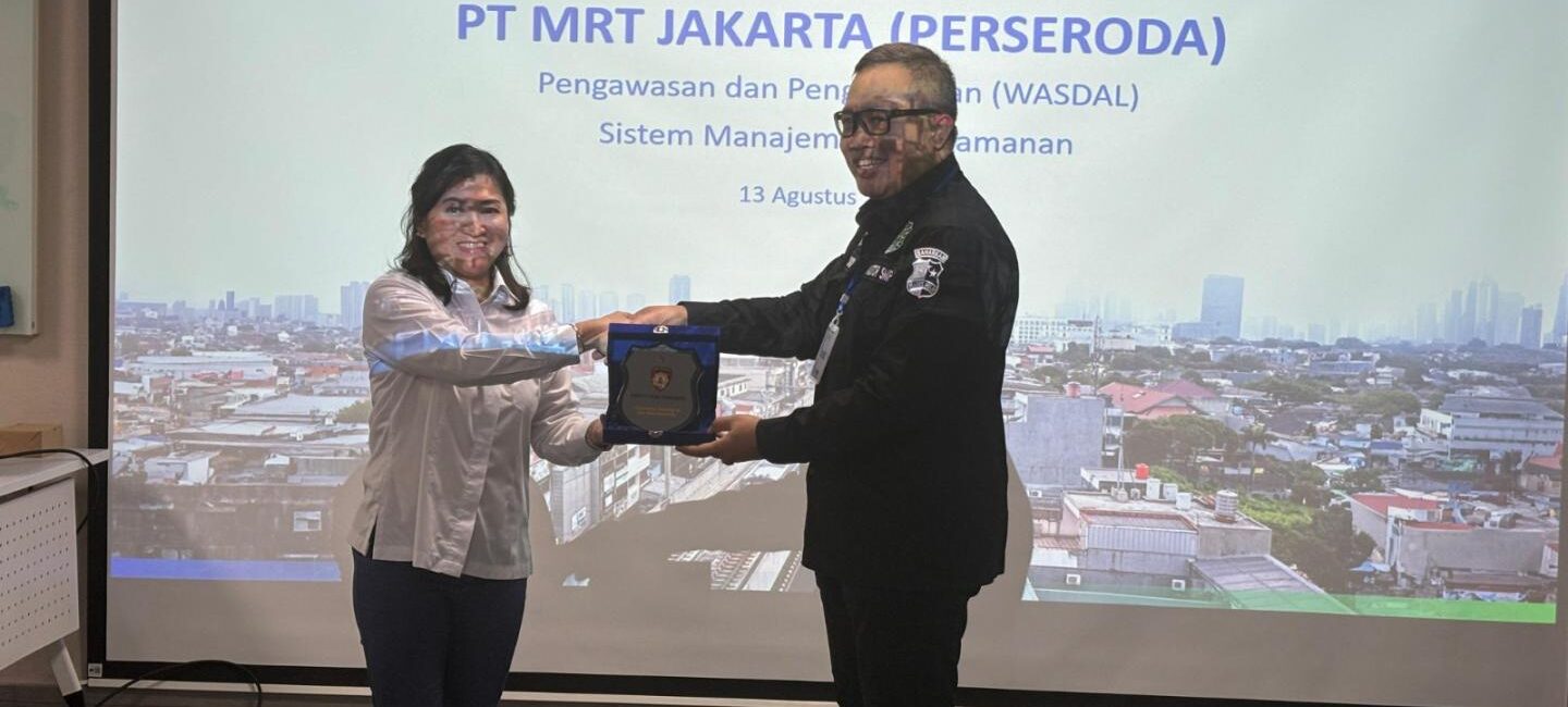 PT MRT Jakarta (Perseroda) mempertahankan predikat Emas (baik sekali) dalam hasil verifikasi Pengawasan dan Pengendalian Sistem Manajemen Pengamanan (SMP) 2024 dengan nilai 90,42 persen. Verifikasi dilakukan oleh Direktorat Pengamanan Objek Vital (Ditpamobvit) Baharkam Polri selama tiga hari, yaitu Selasa—Kamis (13—15-8-2024) di seluruh infrastruktur fase 1 MRT Jakarta meliputi area depo, gardu induk, dan stasiun. Acara pembukaan audit dihadiri langsung oleh Direktur Operasi dan Pemeliharaan PT MRT Jakarta (Perseroda) Mega Tarigan dan Ketua Tim Auditor Kombes Pol. I Gede Putu Dedy Ujiana.